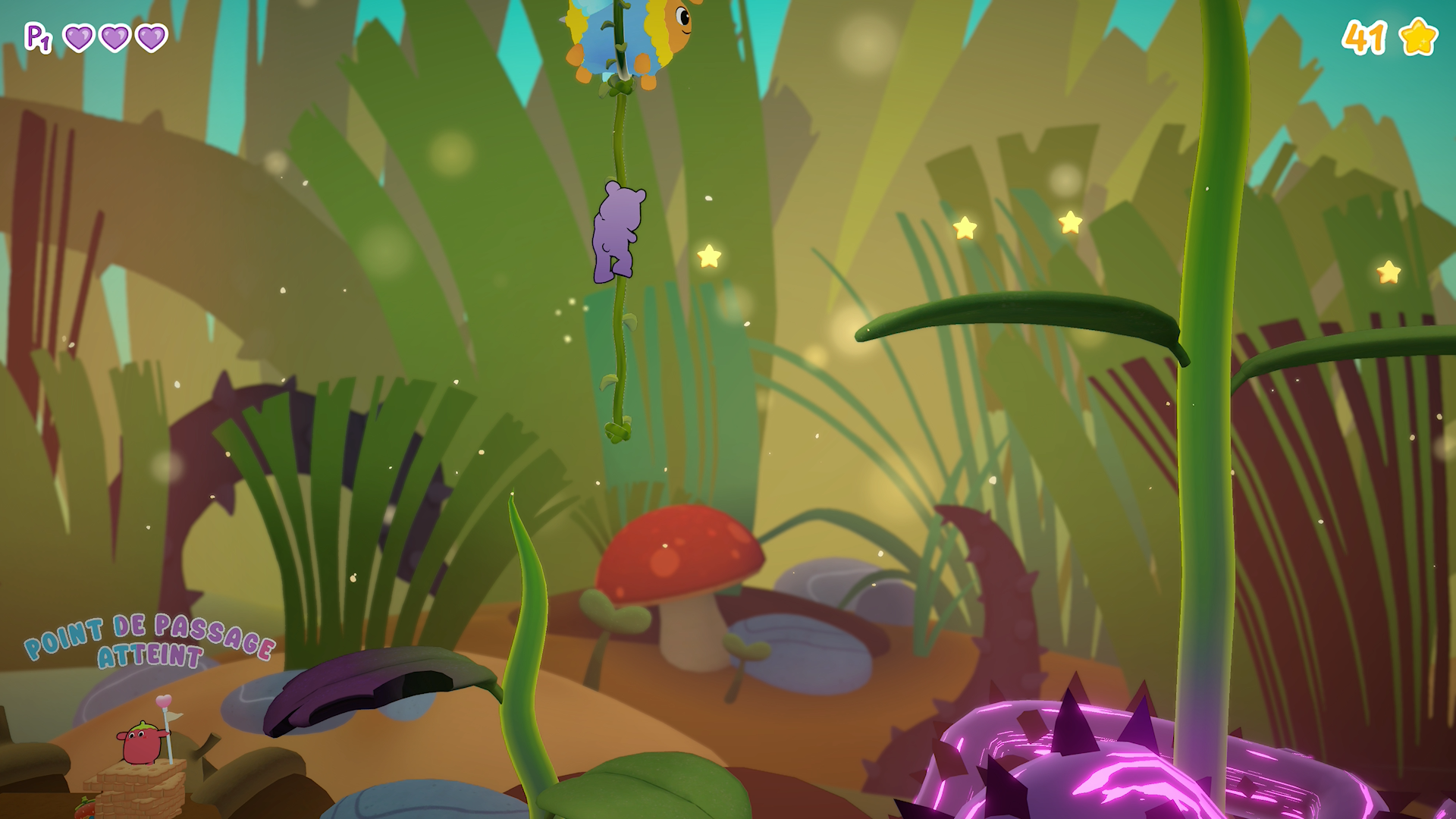 Pour ce test, j’ai d’abord choisi de terminer le jeu seule afin de pouvoir me faire un premier avis avant de le proposer à ma fille de 8 ans. Dès le début, le jeu semblait accessible, presque un jeu d’enfant, avec une progression fluide et des mécaniques simples. Cependant, à partir du niveau 3, la situation a changé. J’ai commencé à ressentir une vraie difficulté, notamment à cause de certains sauts qui, parfois, sont particulièrement longs et difficiles à réussir. Cela m’a valu plusieurs erreurs et, bien sûr, des chutes dans le vide, qui, comme prévu, me renvoyaient directement au dernier point de contrôle.