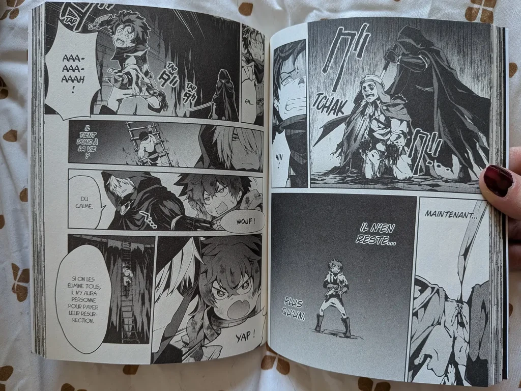 Lorsqu’ils retournent dans le donjon, ils tombent sur le groupe d’aventuriers qui “possède” Garbage. Le combat est inévitable : 10 contre 2. Mais Iarumas, armé de son katana, est d’une rapidité redoutable. Il tranche ses ennemis avant même qu’ils ne comprennent ce qui leur arrive.