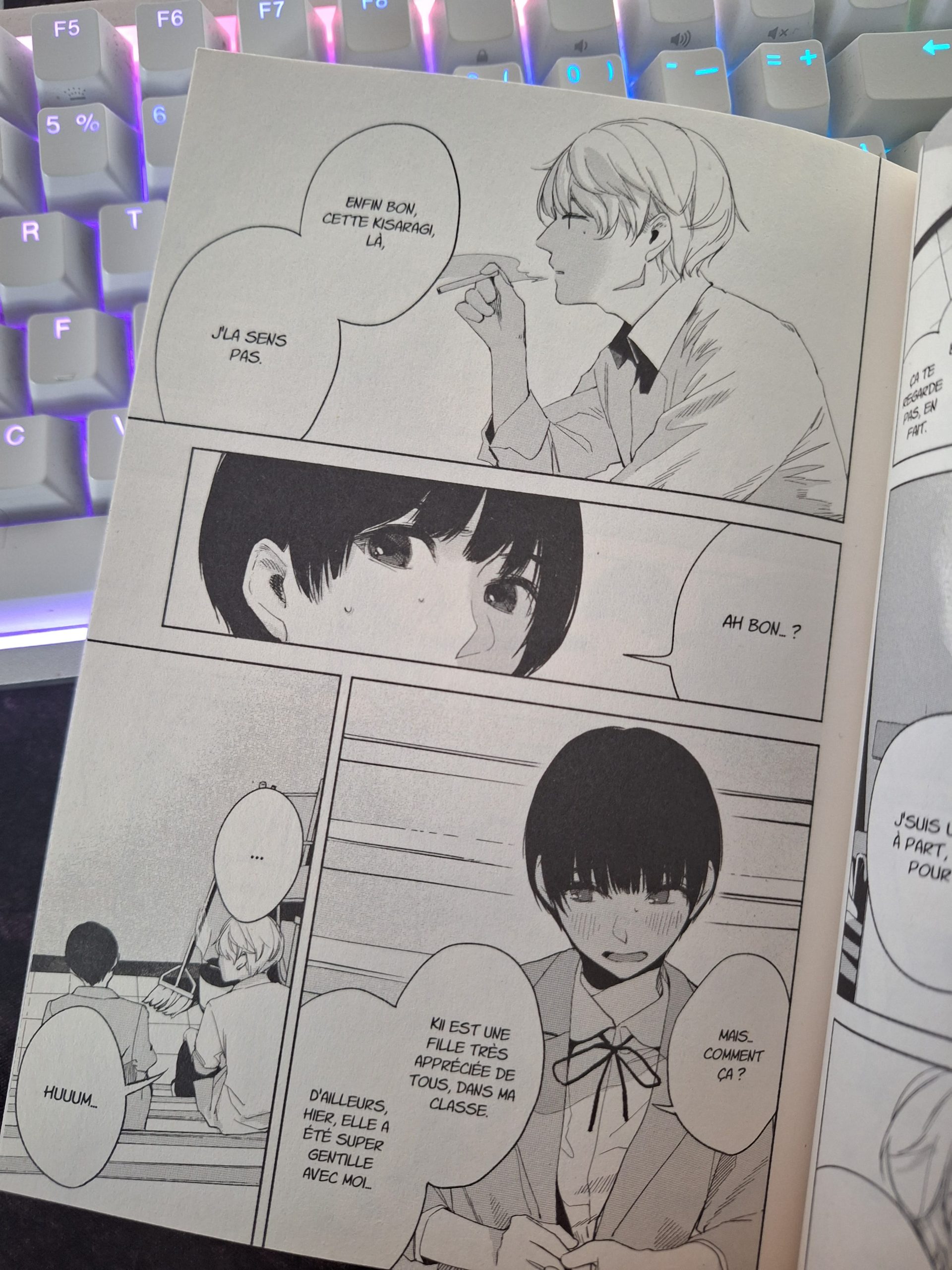 Et puis, Miya a bien d’autres préoccupations. La reprise de l’école n’est pas simple pour elle, entre la foule, le bruit et l’agitation constante… tout cela devient vite pesant. Malgré tout, si elle veut réussir ses rattrapages, elle n’a pas le choix : elle doit travailler dur. Elle décide alors de se faufiler dans un escalier, un endroit où personne ne vient… enfin, c’est ce qu’elle pense.