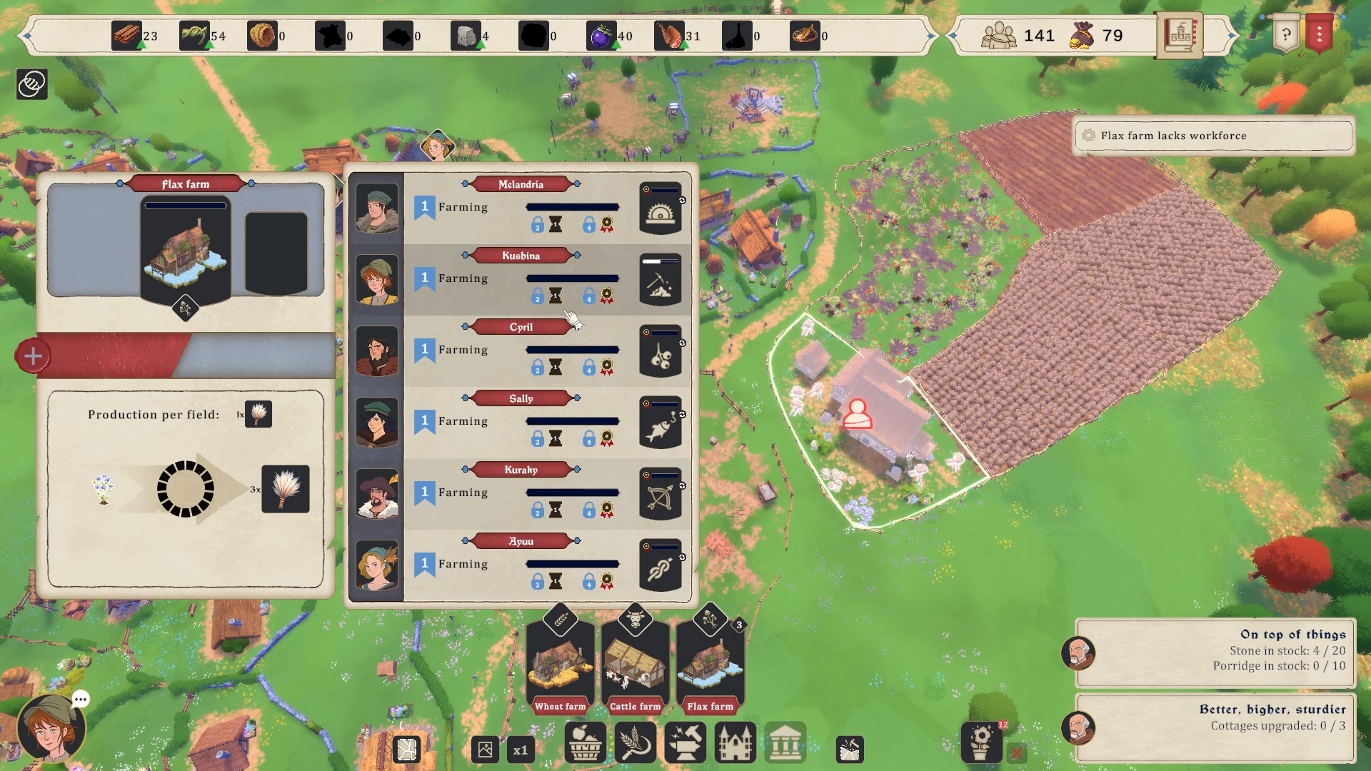 Les zones agricoles doivent elles aussi être placées avec sagesse. City Tales – Medieval Era embarque une gestion de la qualité du sol, ce qui implique une contrainte sur le positionnement des élevages et des cultures. Il n’est pas possible de définir une zone passant sur des terres non fertiles.