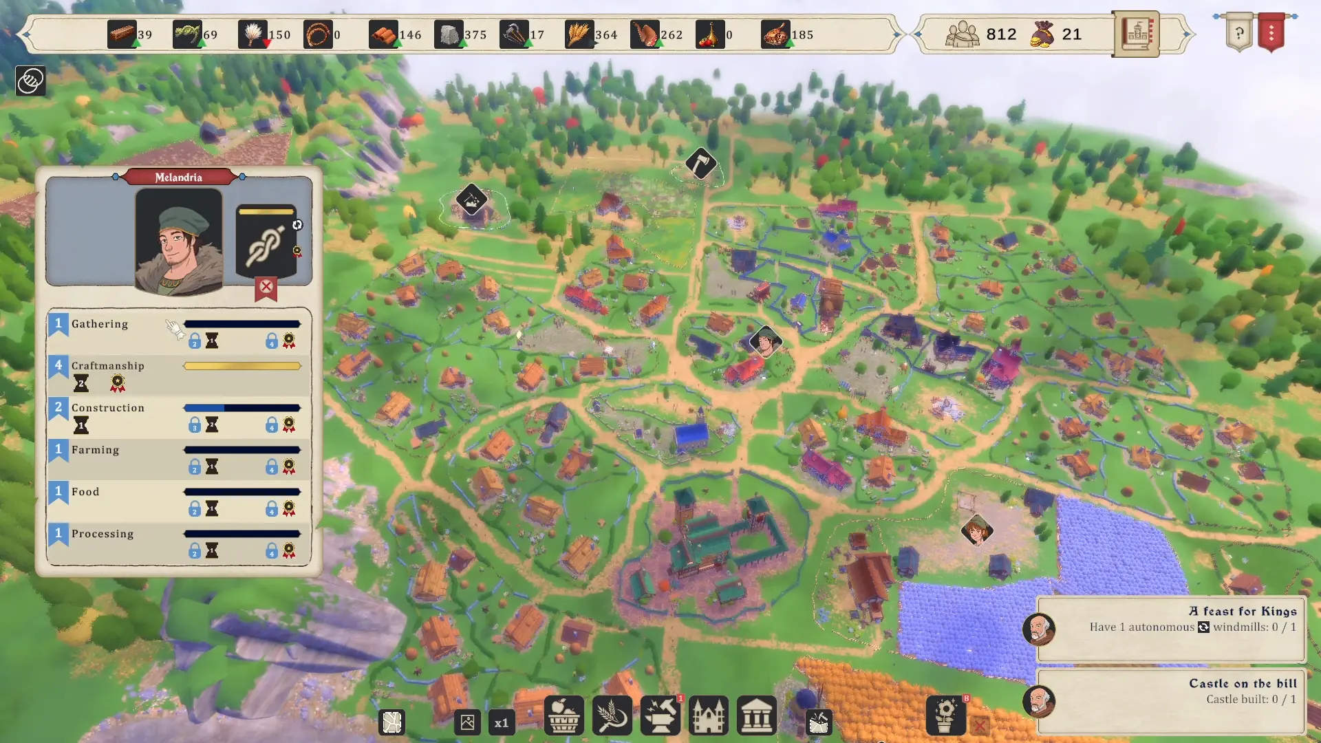 Ce mode organique ne concerne pas tous les bâtiments de City Tales – Medieval Era. En effet, les bâtiments liés à l’extraction de ressources ou encore de le château sont placés précisément. Les constructions urbaines ou agricoles sont en mode organique.
