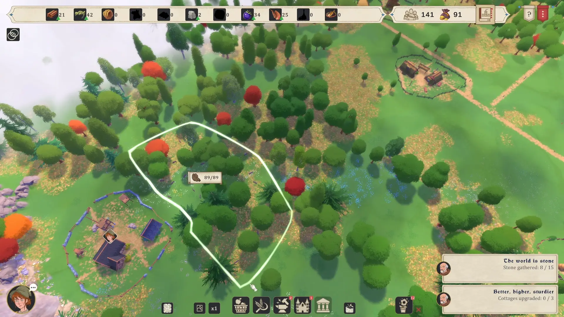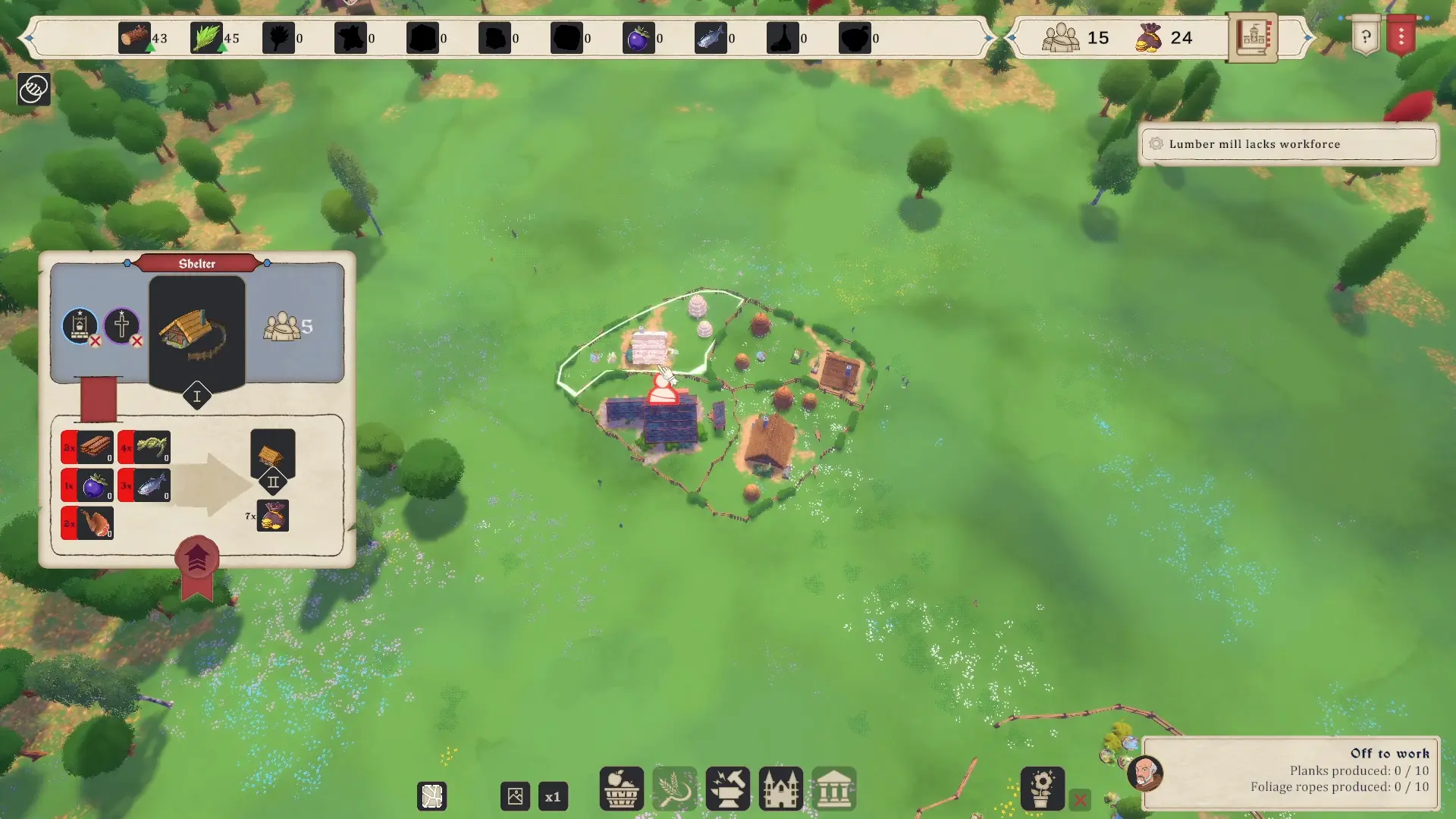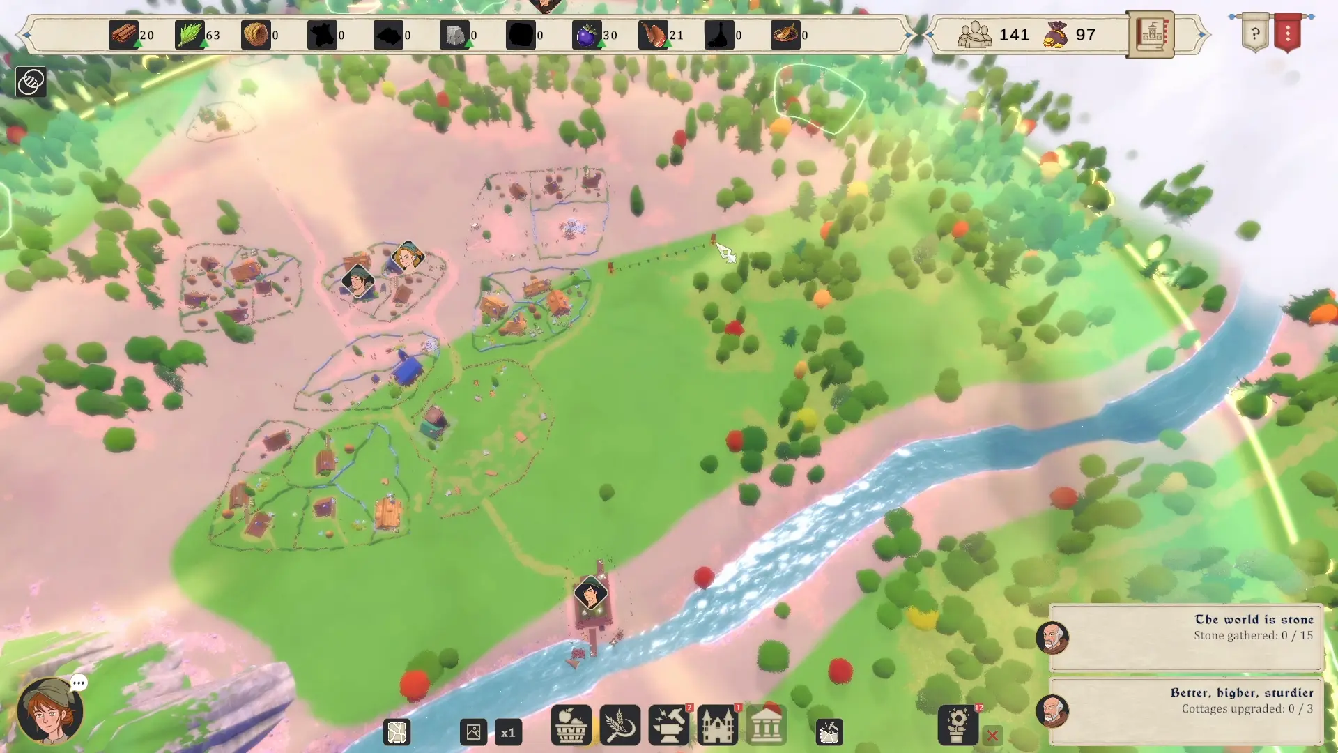 De plus, les matières premières comme les baies, la pierre ou encore le gibier sont disponibles de manière limitée dans des zones précises. Une fois la zone épuisée, il vous faudra déplacer le bâtiment pour exploiter une autre zone. Un site épuisé se régénère avec le temps. Donc pas de stress, deux zones d’extraction de pierre suffisent, il faut juste déplacer la carrière de l’une à l’autre en cas de besoin.