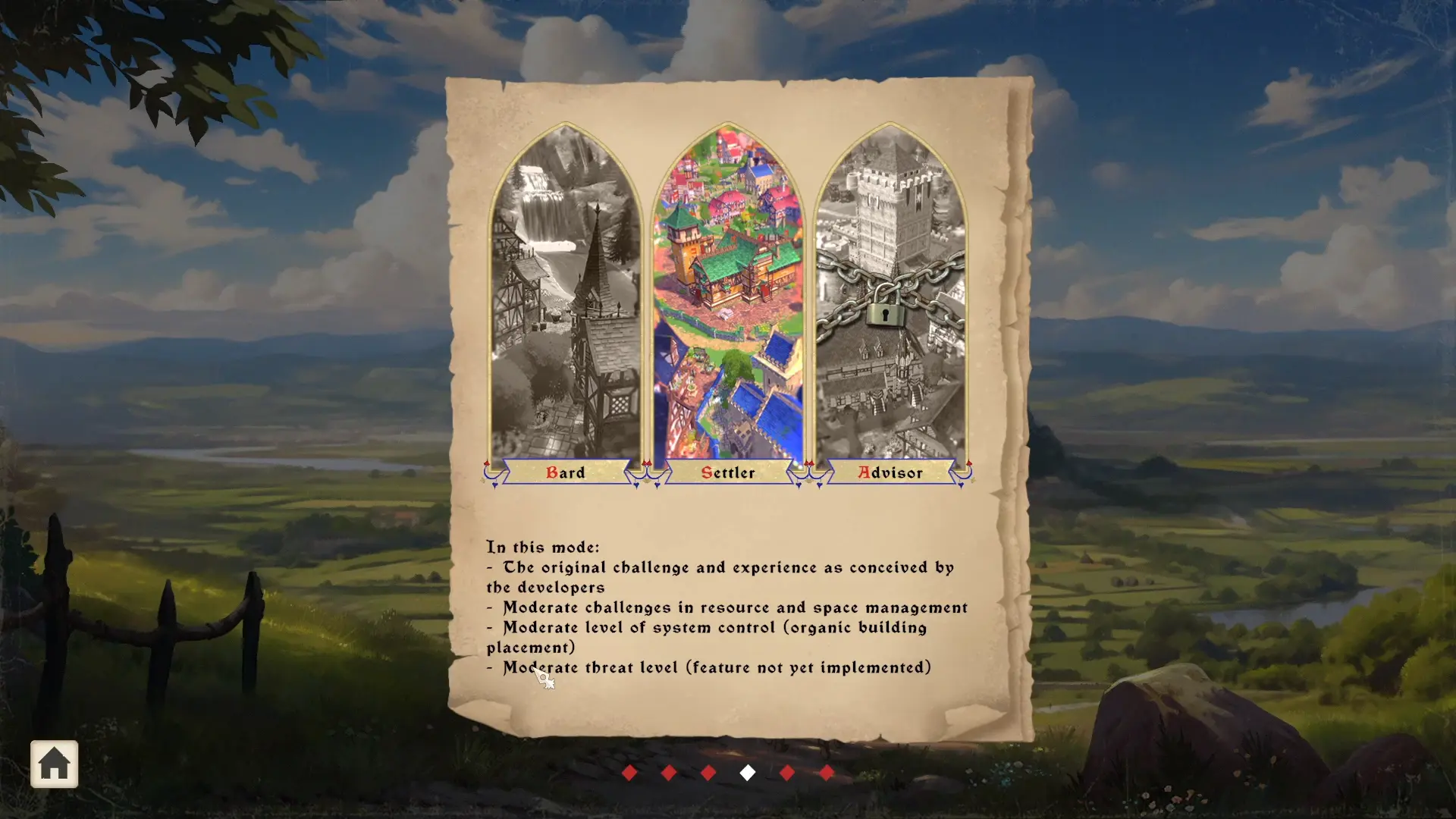 Le premier point de configuration est le niveau de difficulté. Cela impactera la gestion des ressources et de l’espace disponible ainsi que la manière de placer les bâtiments. Par la suite, City Tales – Medieval Era proposera un système de menace. Cependant, ce dernier n’est pas encore disponible.