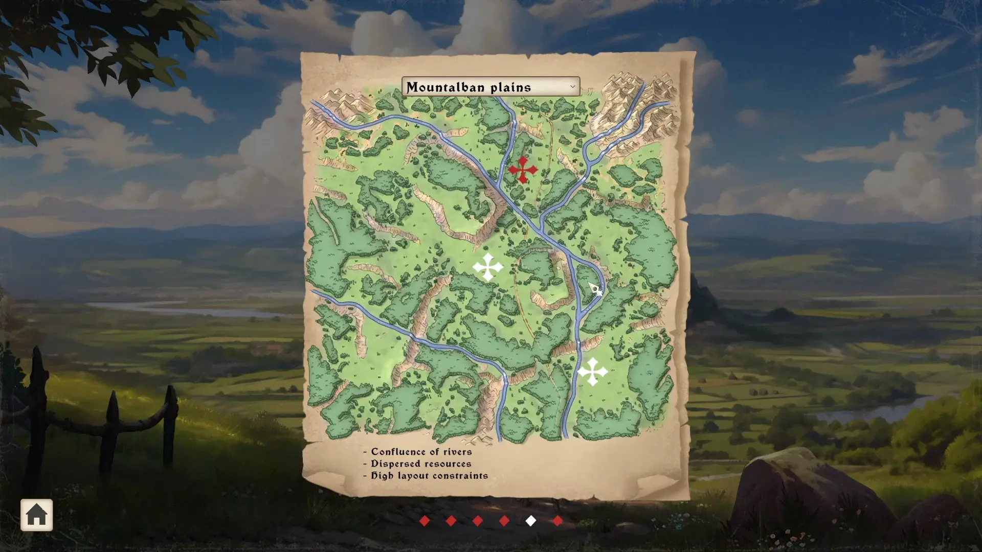 Le second paramètre, celui qui selon moi offre le plus de variabilité, est le style de carte. Vous avez le choix entre plaine, vallonné ou montagneux. En fonction du type de paysage choisi, il vous sera plus ou moins facile de placer vos bâtiments et d’avoir accès à vos ressources.