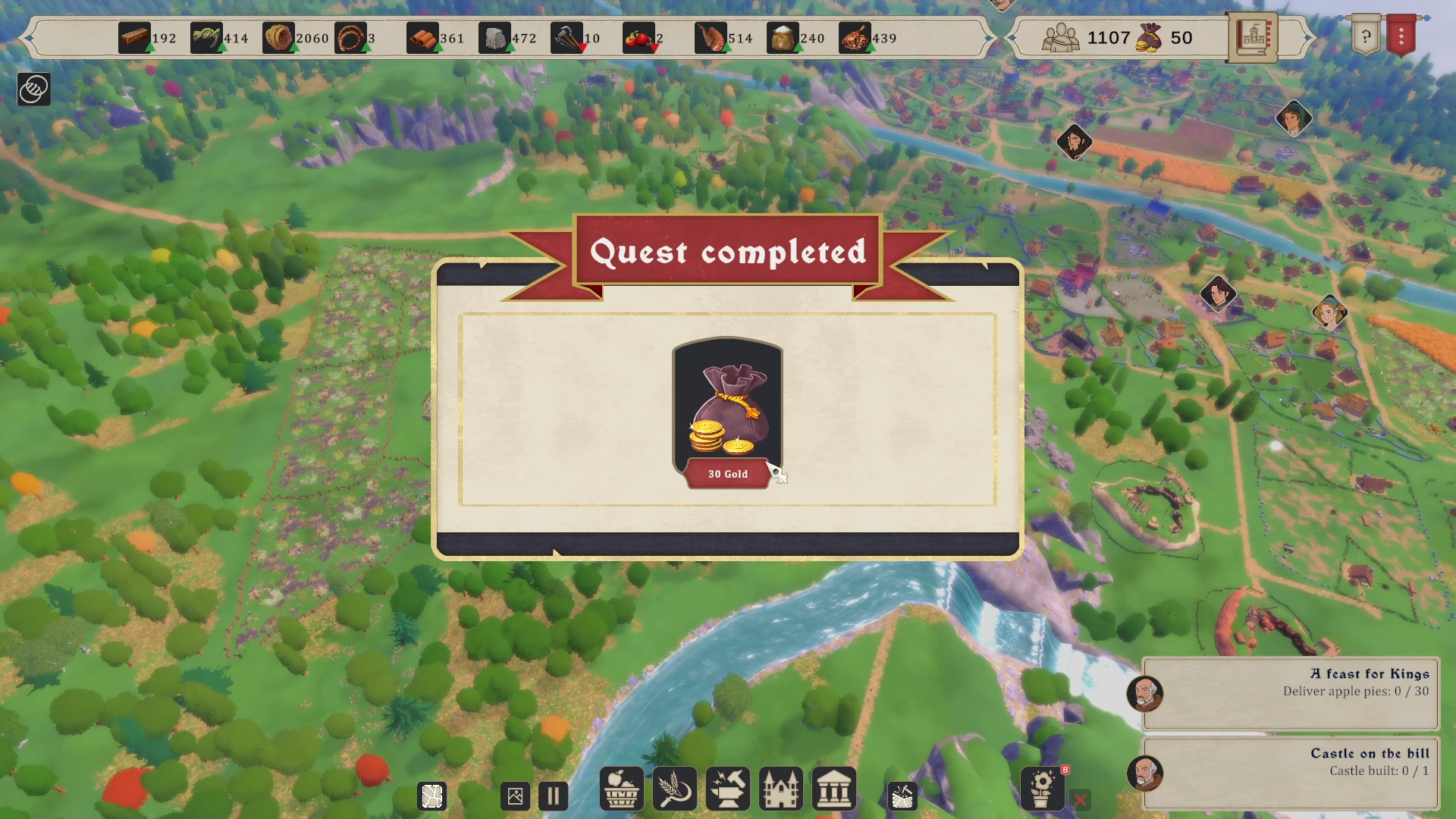 Les parties de City Tales – Medieval Era sont scénarisées, ce qui veut dire qu’une histoire fait évoluer le contexte. Chaque étape de l’histoire est représentée par un objectif, une quête à réaliser. En général, compléter l’objectif permet d’obtenir un peu d’or ou de débloquer de nouveaux bâtiments.