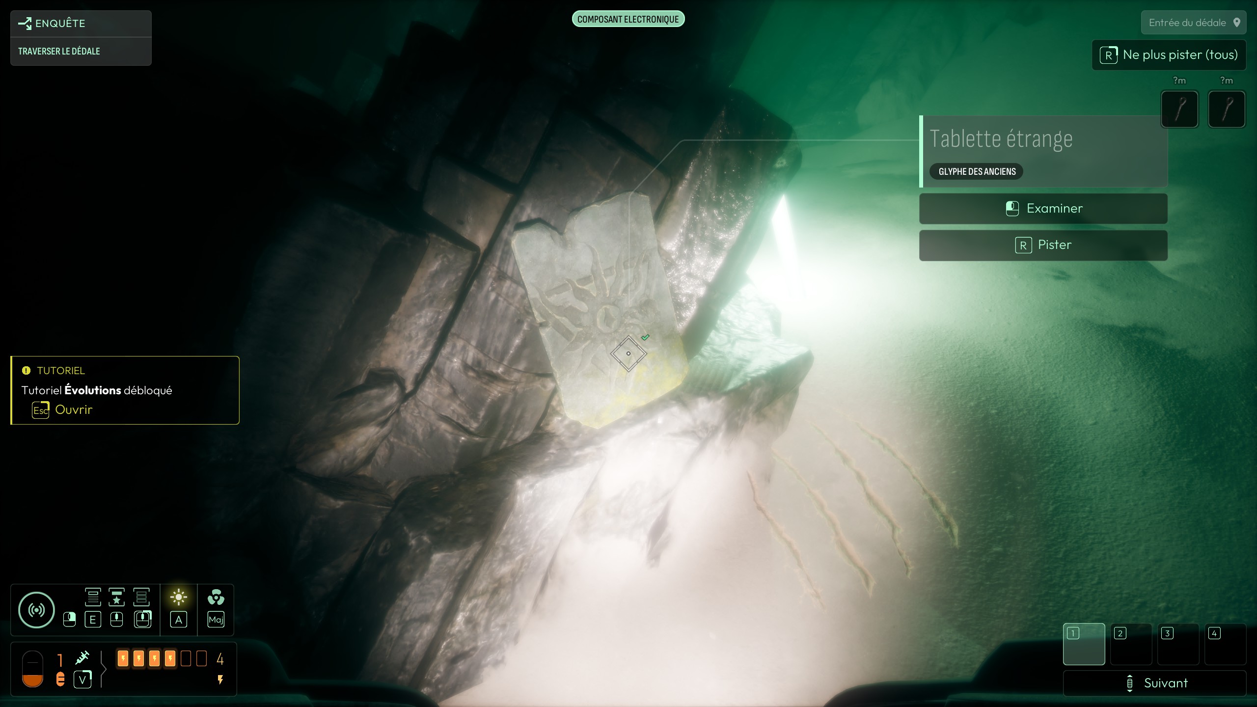 Pour empêcher que cela ne se fasse trop vite, ou pour débloquer d’autres bonus, qui pourront être par exemple, liés à notre énergie, on trouvera des sortes de stèles et tablettes, elles débloquent ce qui est appelé des “évolutions”, et des « capacités ».