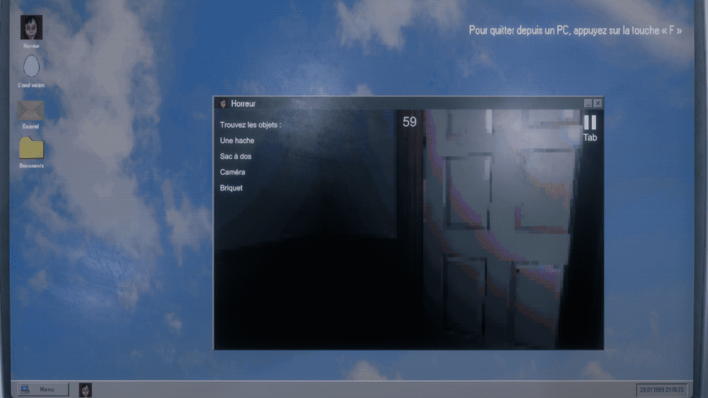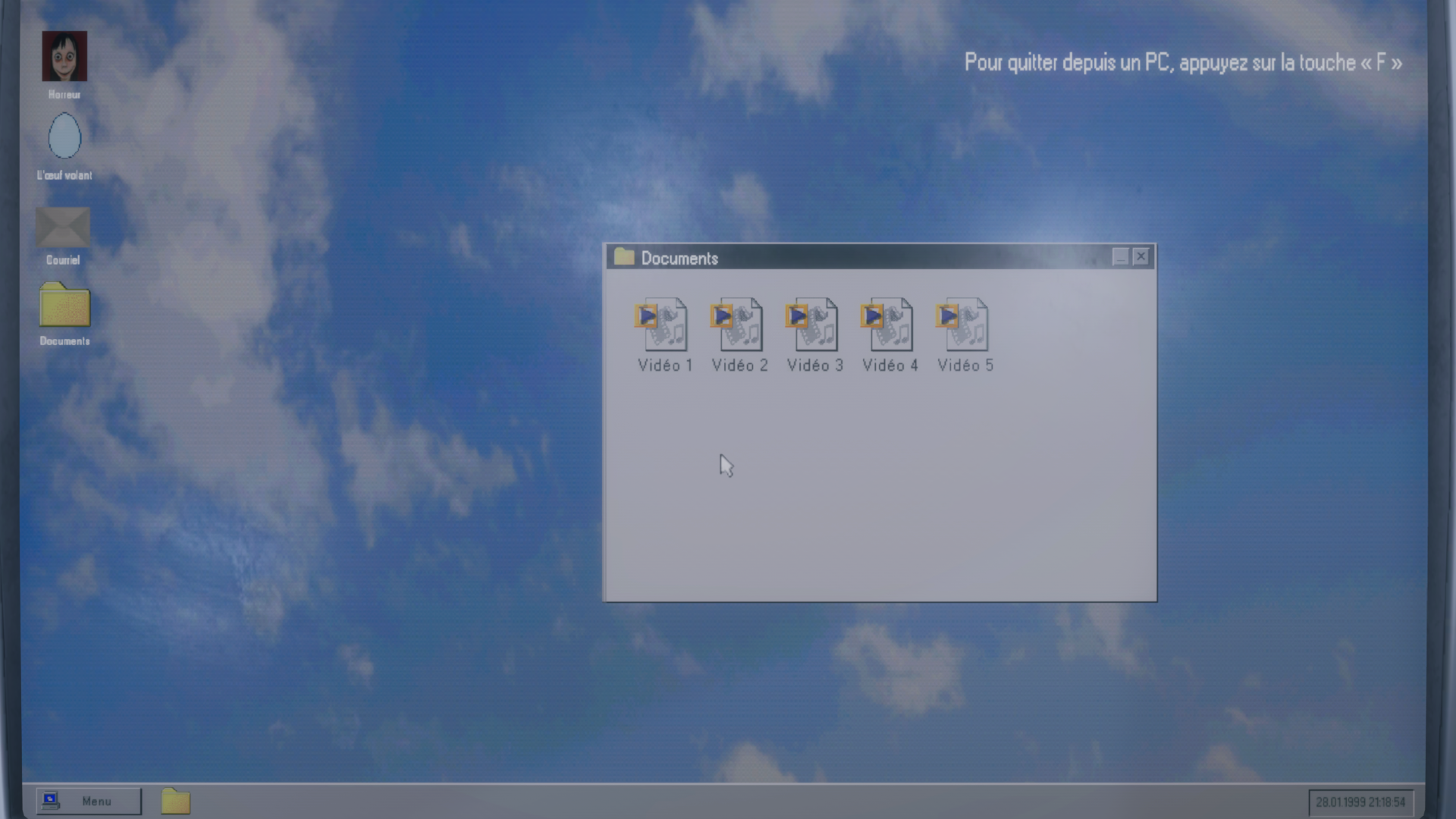 Le jeu commence directement sur votre ordinateur, et pas n’importe lequel… Nous sommes en 1999 ! Il est tard et vous ne trouvez rien de mieux à faire que de regarder des vidéos envoyées par votre ami Max.