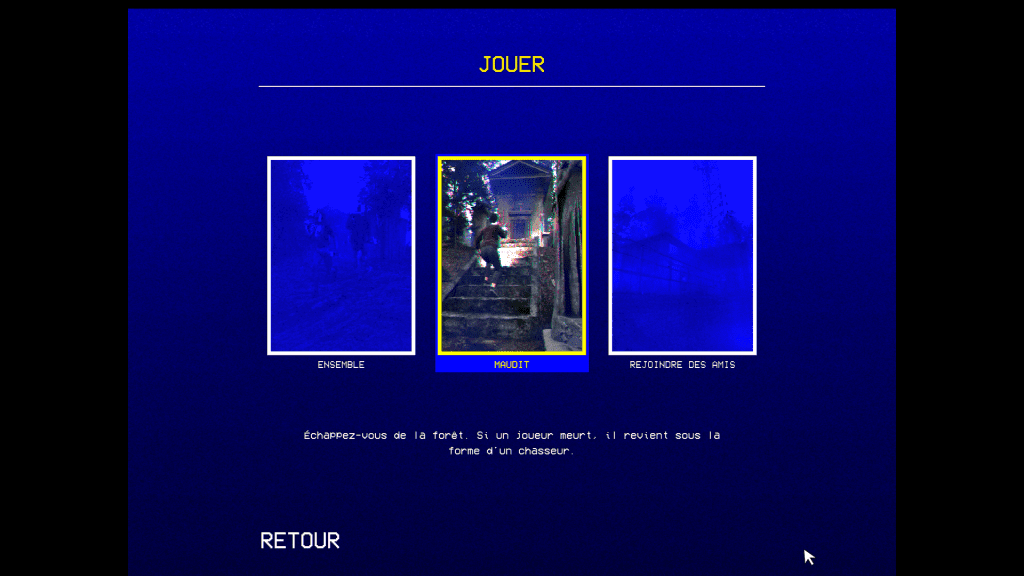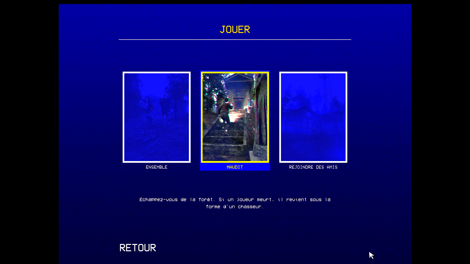 Ensemble : Dans ce mode, votre objectif est de vous échapper de la forêt en équipe. Attention : si un joueur meurt, tout le monde meurt. La coopération est donc essentielle, et aucune erreur n’est permise. Et bien entendu, vous n’êtes jamais à l’abri d’un ou deux joueurs qui s’amusent à crier juste pour faire échouer toute la partie…
