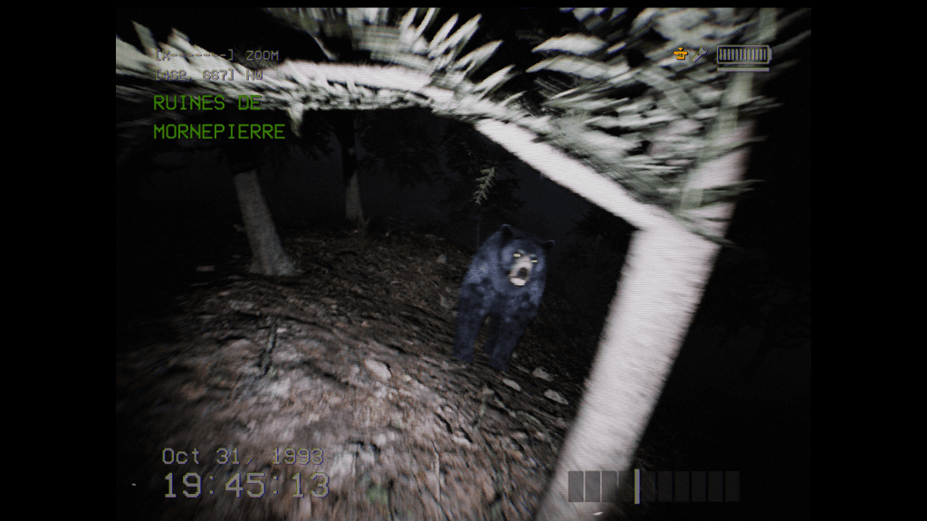 Si crier peut vous coûter la vie, ce n’est malheureusement pas le seul danger qui vous attend. Sur votre chemin, vous pourrez croiser des ours prêts à vous éliminer sans la moindre hésitation, tomber dans des pièges laissés par les chasseurs ou encore vous retrouver à court de piles au mauvais moment. Concernant les créatures qui rôdent dans la forêt, il n’y a pas grand-chose à faire… à part courir.