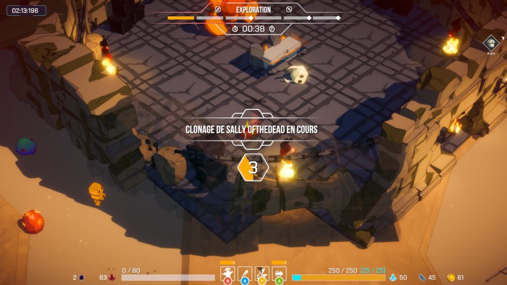 Si votre personnage meurt, M.ark peut simplement créer un clone pour vous renvoyer dans l’action. En revanche, si M.ark est détruit, la partie se termine et le temps remonte jusqu’à votre base.