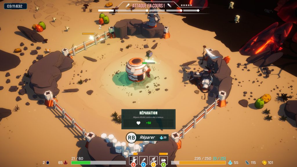 Vous allez pouvoir construire des murs et réparer M.Ark durant l’assaut.