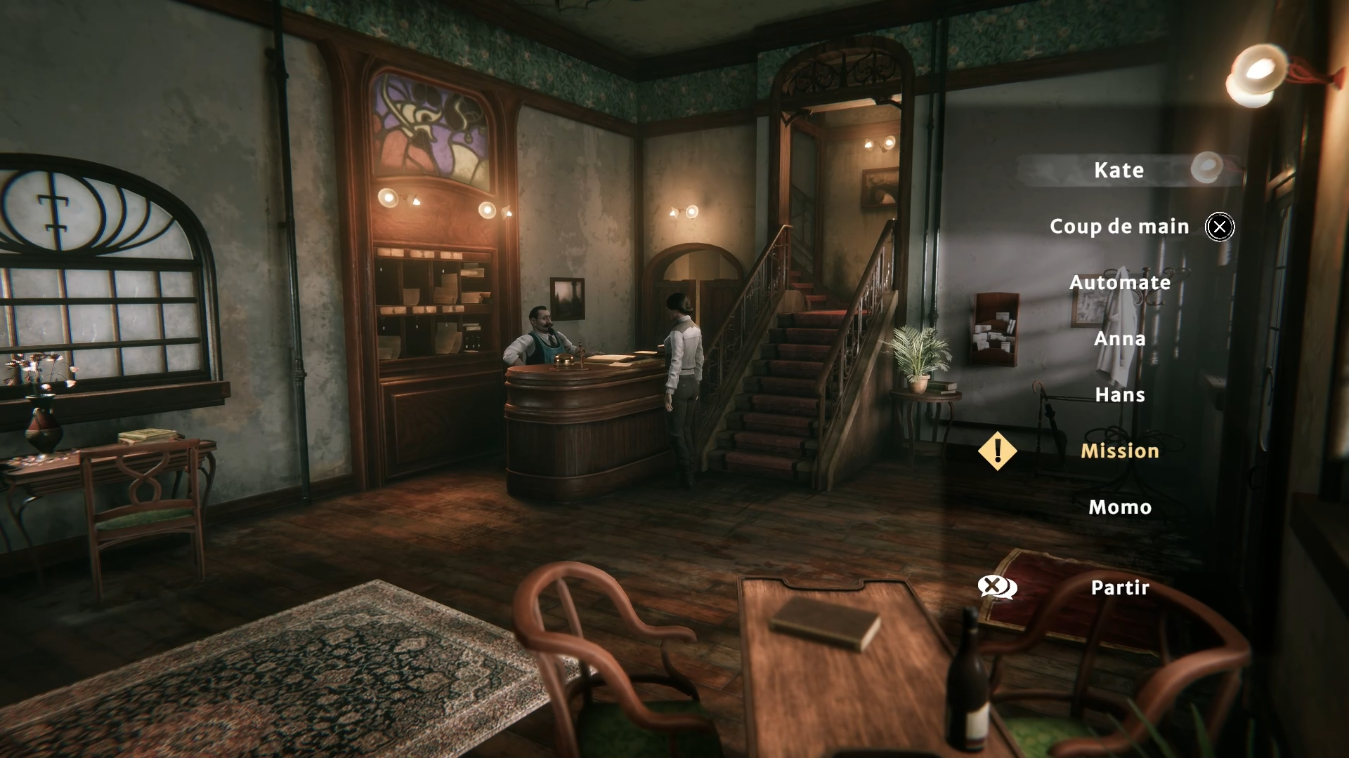 En moins direct, on reçoit parfois des informations importantes en discutant avec les différents personnages rencontrés. Via un menu, Kate peut aborder une série de sujets en lien avec son investigation ou l’endroit où elle se trouve. Les sujets secondaires, qui ne font pas avancer l’histoire, donnent une profondeur, un passé aux personnages.