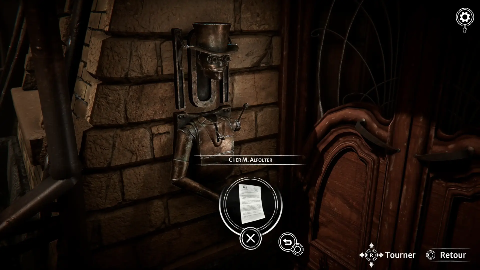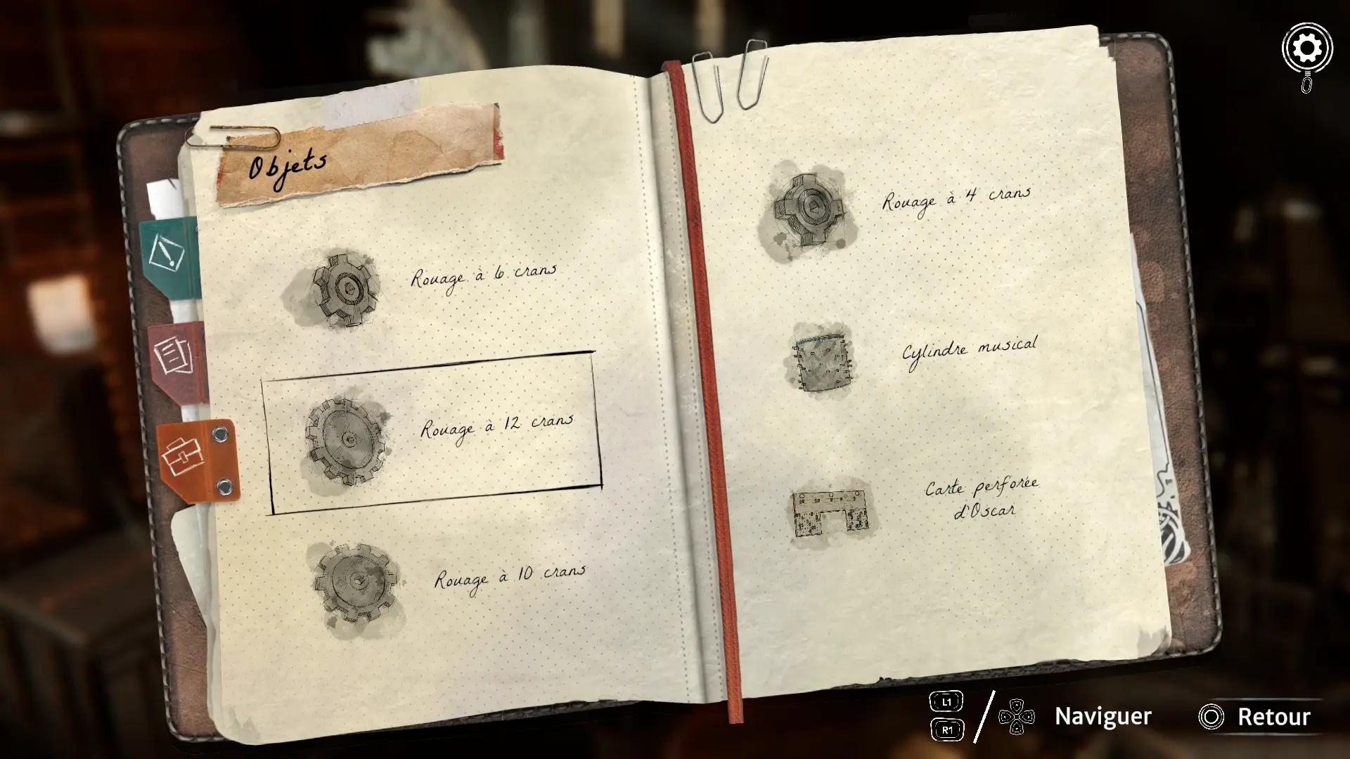 Autre aide de Syberia : le catalogue de documents. En effet, tous les documents récupérés dans le jeu sont disponibles tout au long de l’aventure. A tout moment, il est donc possible de relire l’un d’eux pour retrouver une information, un indice ou une partie du lore du jeu. Car oui, bien que certains documents fournissent des informations liées aux énigmes du jeu, l’utilité principale de ces papiers est bien d’enrichir les connaissances du joueur sur l’histoire du monde, des personnages.