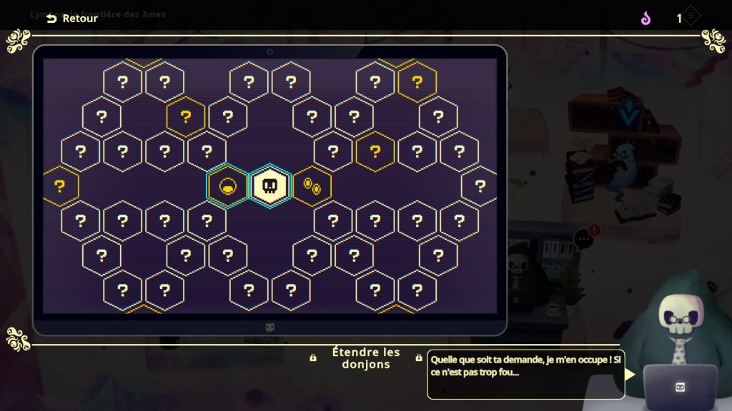 Vous allez pouvoir améliorer les donjons, un peu comme dans un arbre de compétences. Ici, vous débloquerez de nouvelles pièces, de nouveaux objets à récolter, de nouvelles améliorations, etc.