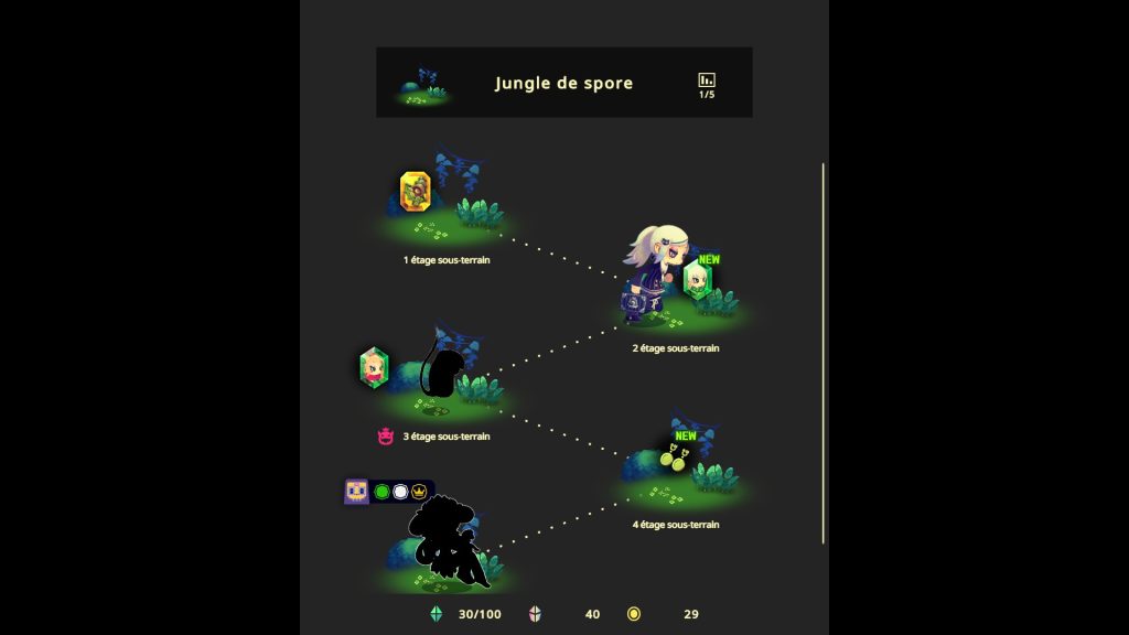 Ils sont constitués de plusieurs étages : cinq au début, et plus vous avancerez, plus il y en aura. Dans chacun de ces étages, vous allez ramasser des gemmes, trouver de nouvelles unités, rencontrer des marchands, des salles de repos et, bien évidemment, des ennemis. Pour descendre à l’étage suivant, il faudra obtenir une clé. Elle s’obtient dans l’une des salles des monstres.