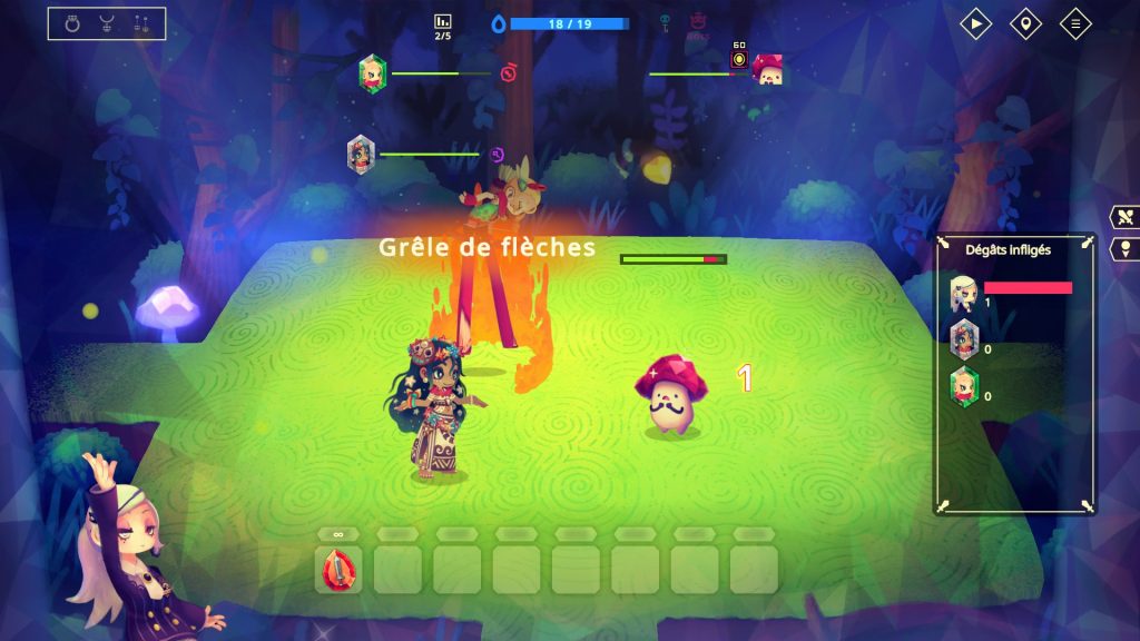 Dans la barre des tâches, en bas, vous pouvez choisir les sorts que vous souhaitez lancer. C’est un autobattler, donc vos unités combattent à votre place après que vous avez effectué votre action. Ensuite vient le tour de l’ennemi, puis le vôtre à nouveau, et ainsi de suite.