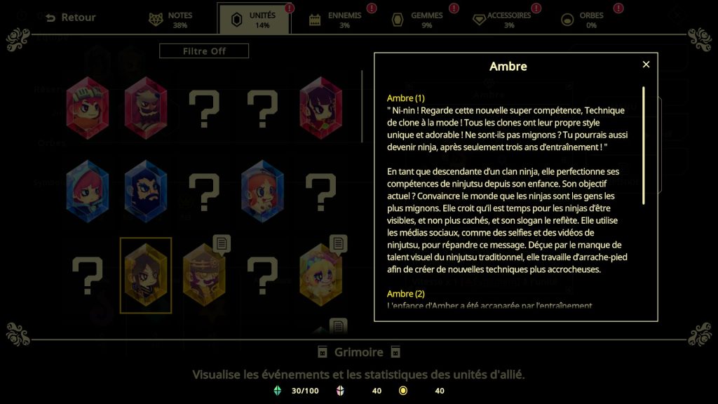Vous commencez le jeu avec une unité qui combat pour vous. Vous pourrez en trouver d’autres dans des coffres, en acheter à la bijouterie et même en revendre. Vous pouvez avoir jusqu’à 6 unités en réserve, et en équiper 6 également. Cependant, au début du jeu, vous ne pouvez en équiper qu’une seule. Il faudra dépenser des carats pour ajouter de nouveaux emplacements d’unités. Plus vous en achetez, plus le prochain emplacement coûtera cher en carats.