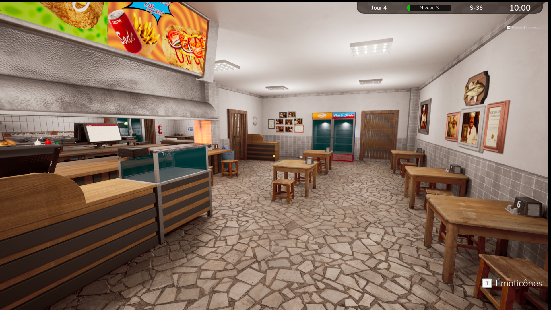 Une expérience équilibrée, idéale pour les joueurs qui connaissent déjà les jeux de simulation. Les clients deviennent plus exigeants et l’impatience commence à se faire sentir. Il faudra donc être un minimum organisé et rapide pour éviter les pertes. Le budget de départ est plus restreint (1250 $).