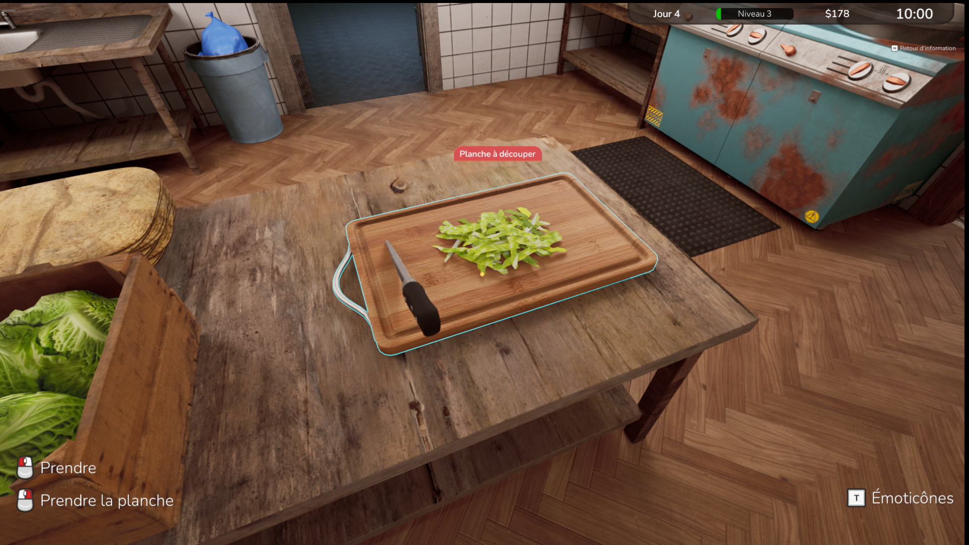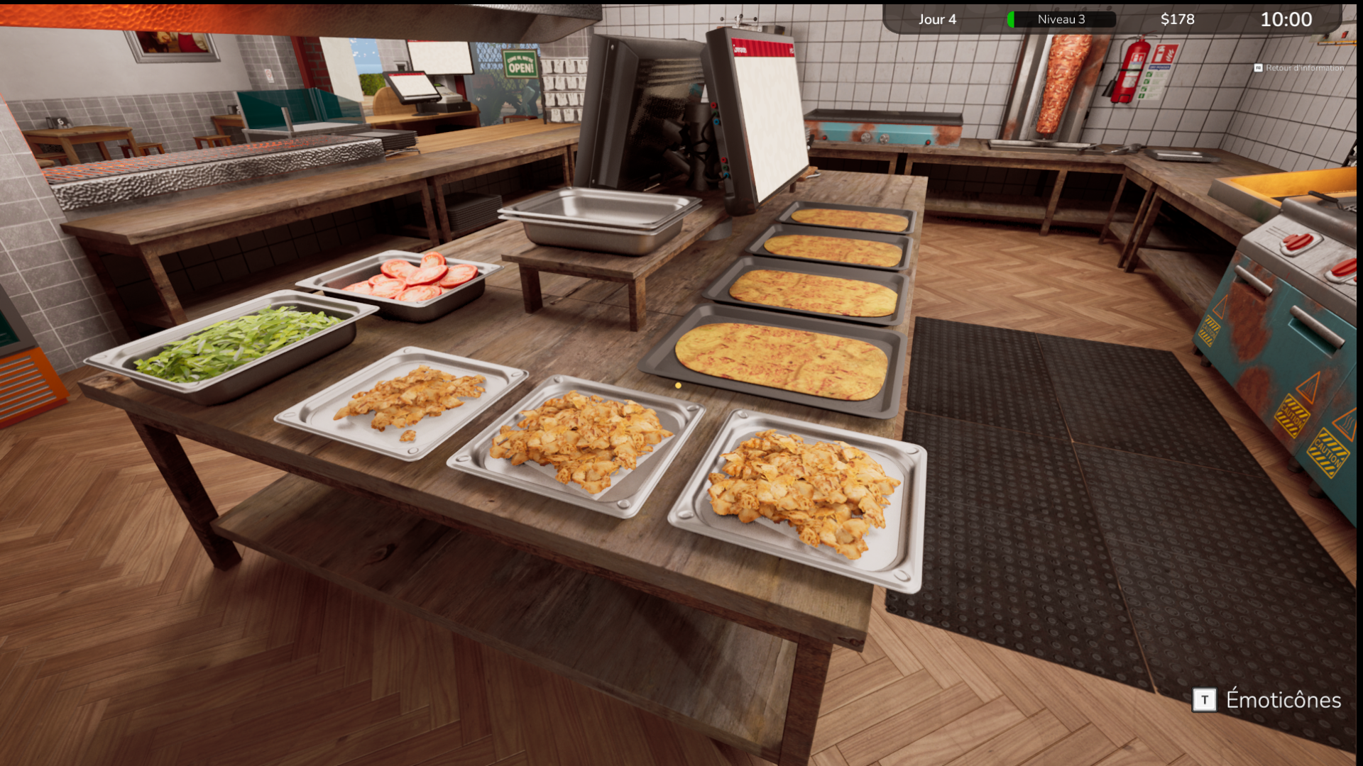 La phase de préparation est probablement l’une des plus importantes du jeu. C’est à ce moment-là que vous allez couper, cuire et disposer vos ingrédients de façon logique. Si vous négligez cette étape, vous risquez vite d’être débordé dès les premières commandes. Un restaurant bien organisé, avec des postes de travail clairs et des ingrédients prêts à l’emploi, fait toute la différence entre un service fluide et un désastre complet. En procédant ainsi, une fois votre restaurant ouvert, il ne vous restera plus qu’à assembler vos préparations.