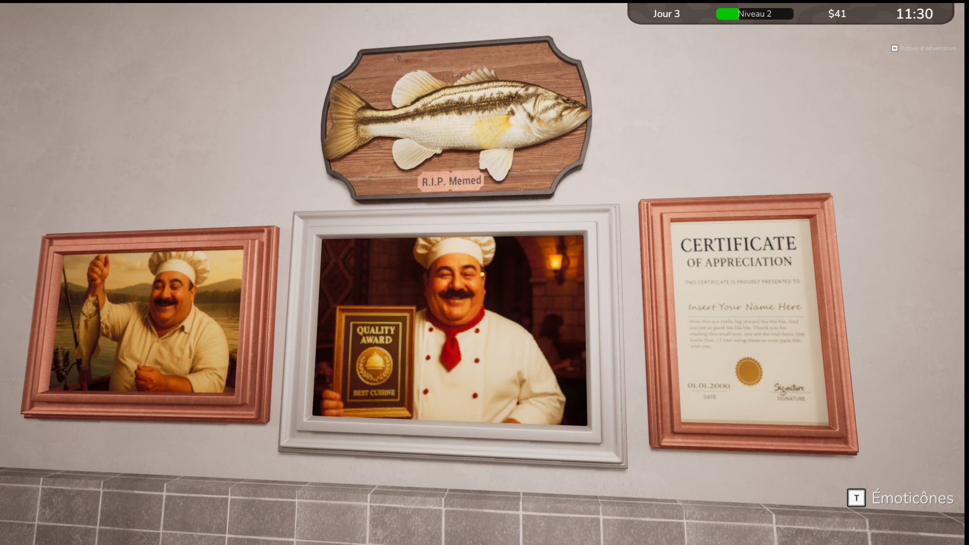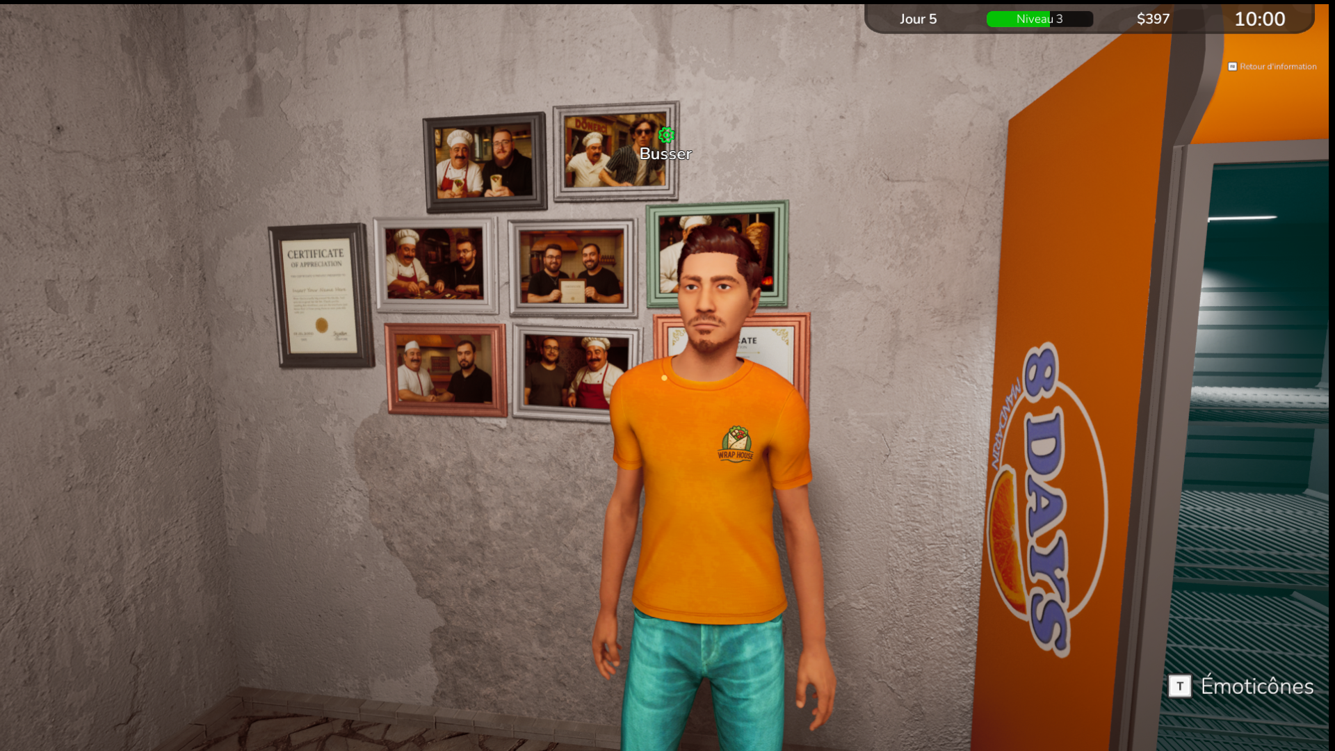 Côté graphismes, le jeu reste correct dans l’état. Ce n’est pas exceptionnel, mais cela fait le travail. En revanche, de nombreux bugs viennent ternir l’expérience : un chat qui semble empaillé, des wraps qui traversent les clients… Ce n’est pas catastrophique, mais cela montre un certain manque de finition (voir la galerie).
