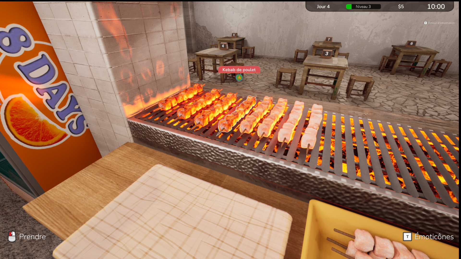 Comme mentionné précédemment, vous ne disposerez que de trois ingrédients au début du jeu. Mais rassurez-vous, d’autres viendront enrichir votre carte au fil de votre progression (frites, yaourt, boissons…). Pour cela, rien de plus simple : il suffit de satisfaire vos clients.